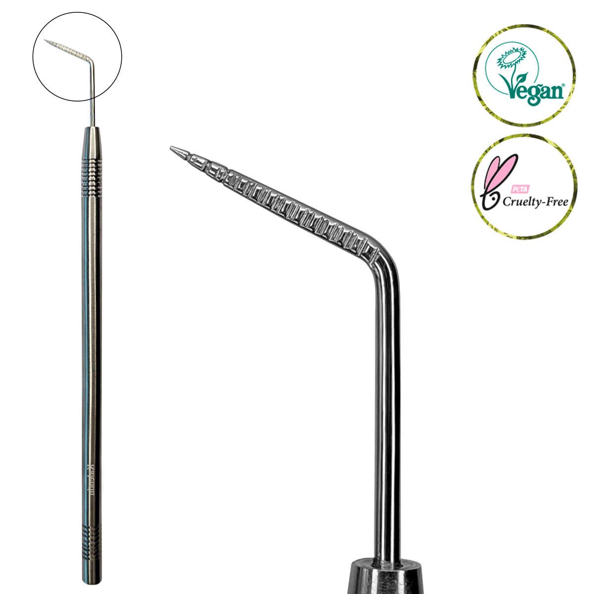 Kalentin lo ha realizzato in acciaio inossidabile di altissima qualità, completamente sterilizzabile e riutilizzabile. L’impugnatura, dotata di texture antiscivolo, garantisce una presa salda e sicura anche durante le fasi più delicate del trattamento.