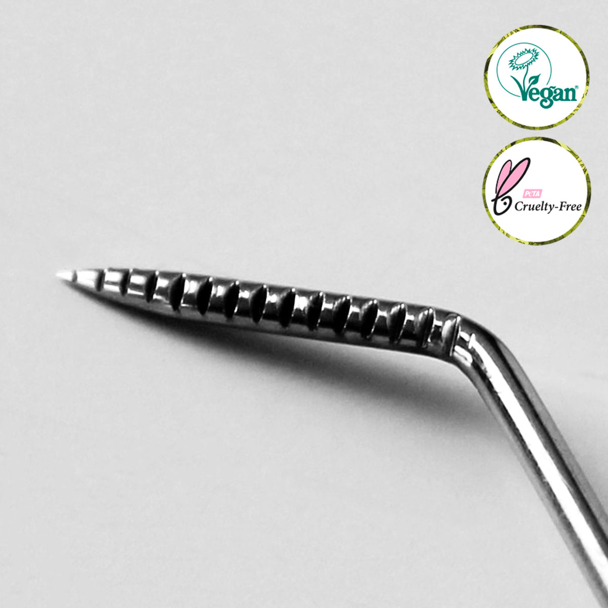 La punta del The Genie SX presenta scanalature sottili, studiate per separare le ciglia in modo preciso e uniforme. Questo dettaglio consente di posizionare le ciglia sui pad in silicone con rapidità, ottenendo una curvatura impeccabile.